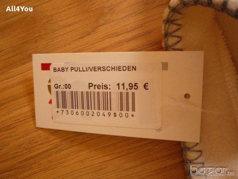 Купуван е от Швейцария, но не успяхме да го облечем. Изключително мекичък и топъл! Подходящ за подарък. Ето и реалните размери: ширина 29см.; рамене 24см.; дължина 30см.; ръкав мерен отгоре 22см.; ръкав мерен под мишницата 20см.