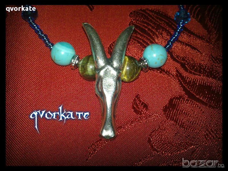 Колие Lucifer-от тигрово око,тюркоаз,пластмасови и метални елементи,чешки мъниста-26,5см.