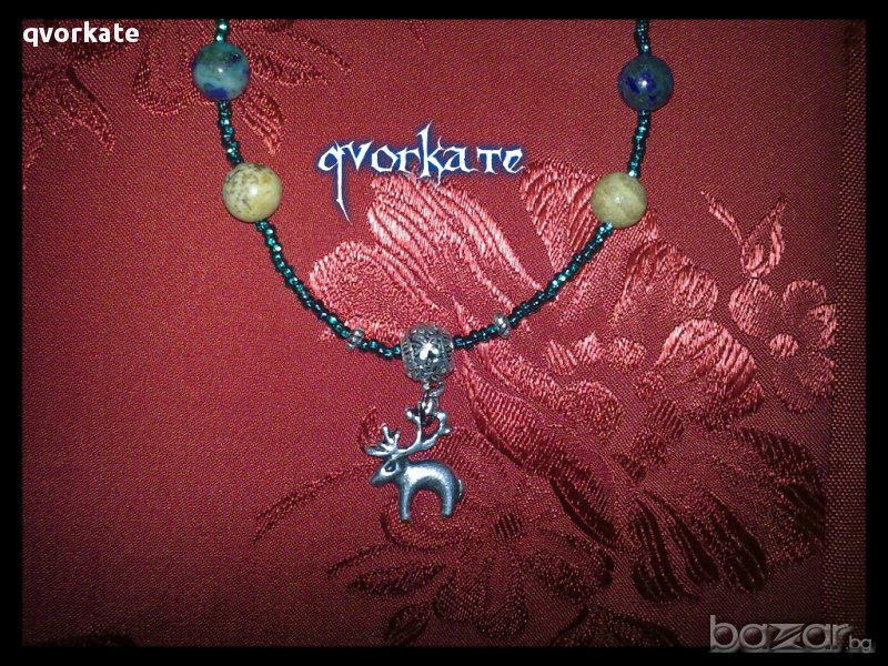 Колие елен-от хризокола,яспис,метални елементи,чешки мъниста -26см.