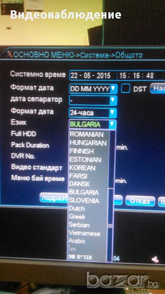 Видео изход: 1 канал BNC, 1 канал VGA, HDMI 1 канал