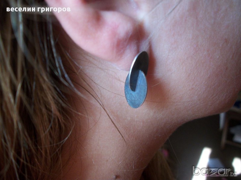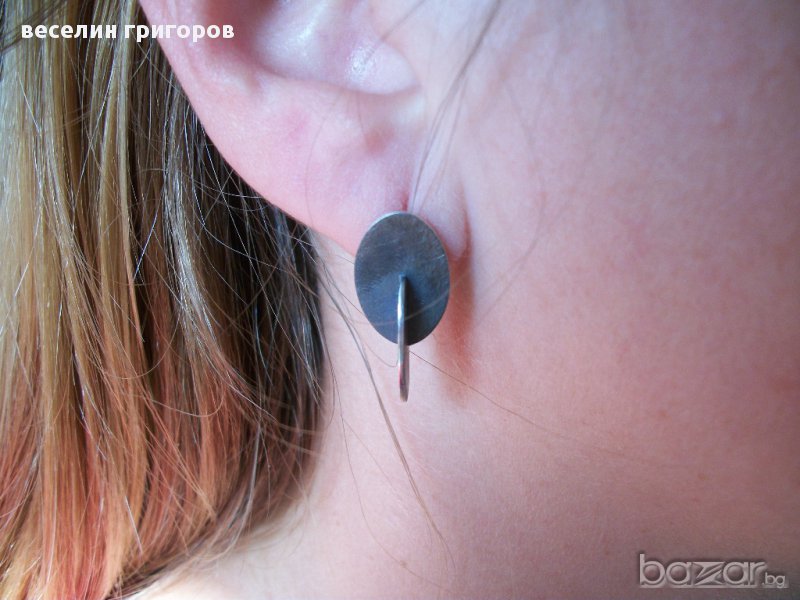 обиците тежат 3.6гр дължината им е 2.4см среброто на плоските