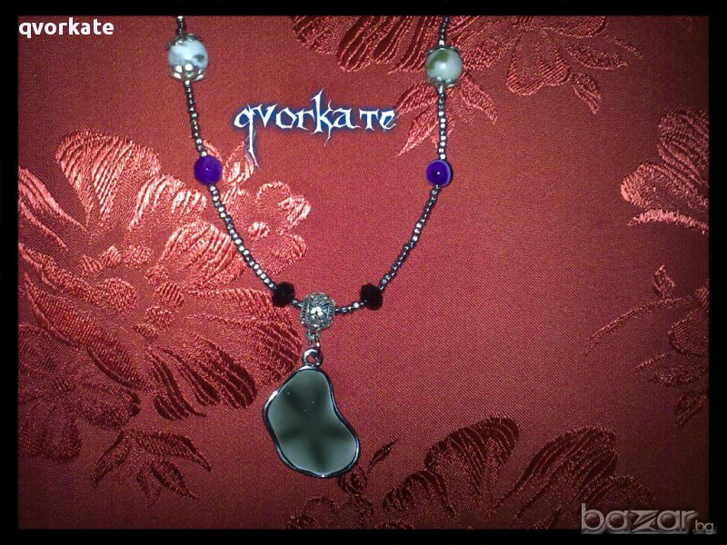 Колие с плочка-от ахат,метални елементи,чешки мъниста-27см.