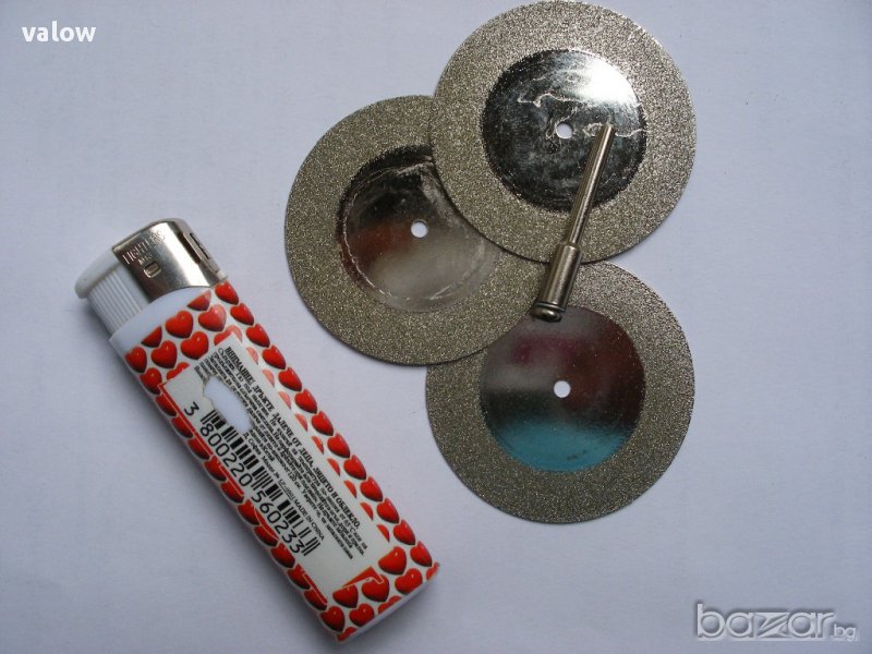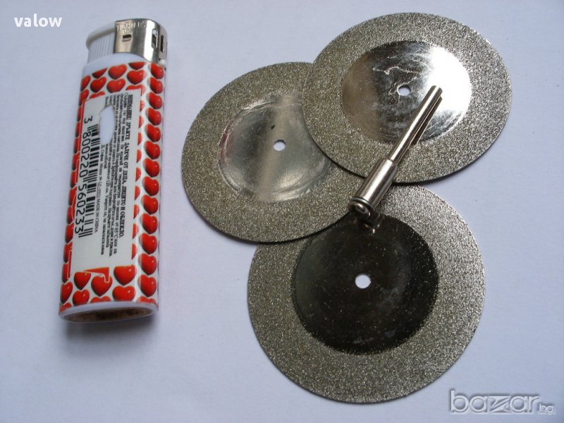Дискове за мултишлайф Дремел Ф50 мм и дебелина 0,8 мм с диамантено покритие. Подходящи са за рязане на керамика, стъкло, порцелан, фибростъкло и др. твърди материали.В комплекта има накрайник за закрепване към шпиндела на машината с диаметър Ф3 мм. Могат да се използват с Дремел, CNC, бормашина и други бързооборотни машини.