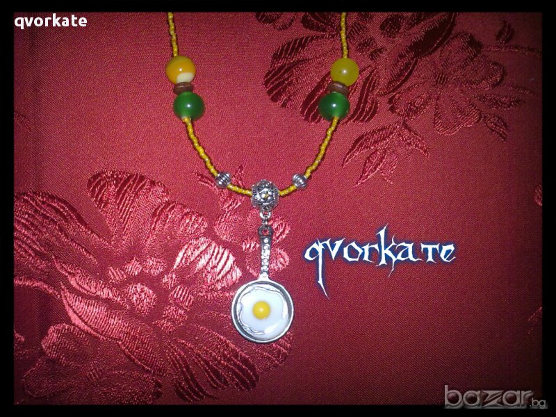 Колие омлет-от ахат,стъкло,метални и дървени елементи,чешки мъниста.