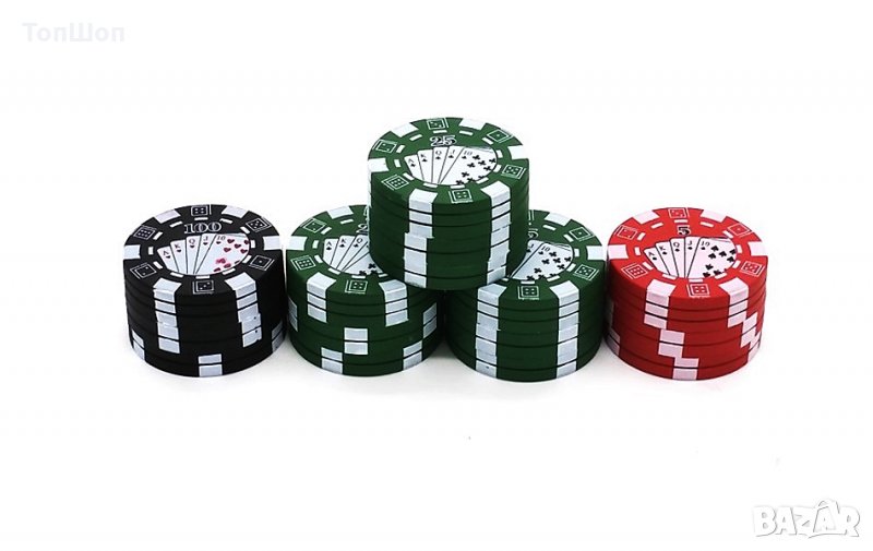 Чисто нови цената е за бройка.Метален грайндер Покер от три части с магнит. Има мрежа за финни частици. В три цвята - черен, зелен и червен.