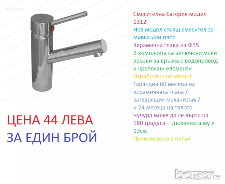 Предлагам на вашето внимание нови модели смесителни батерииВлез в профила си или се регистрирай, за да не губиш наблюдаваните обяви, търсенията си и следваните потребители – ще ги имаш навсякъде с теб.