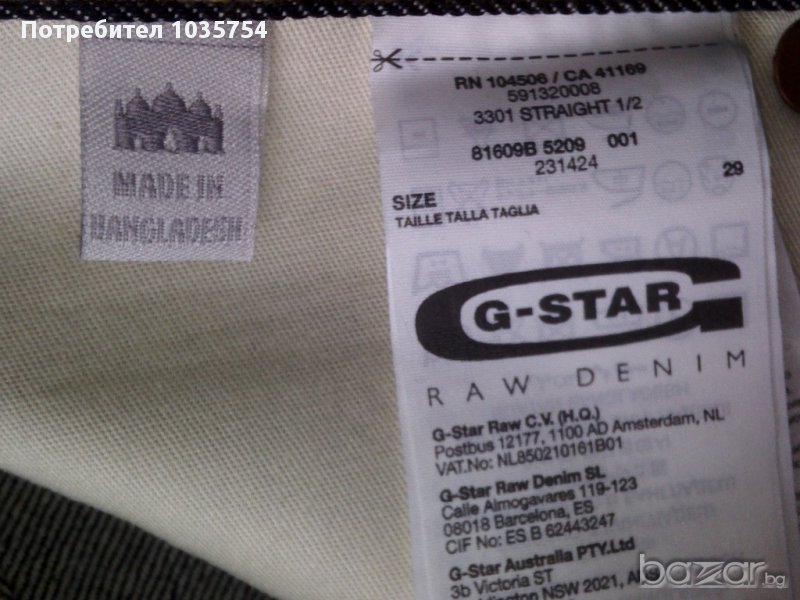 Нови къси панталони G STAR 3301 RAW DENIM STRAIGHT оригинал, внос Англия.