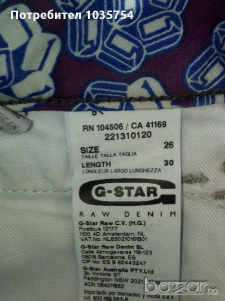 Размери в сантиметри: талия 44см, ханш 51см, дължина крачол от колан 106см, вътрешна дължина крачол 82см, дълбочина на панталона: отпред 20см, отзад 33см. Фигурките върху панталона са от детайлно стилизирани буквички ''G''. Удобният Slim Fit в 3D Raw вариант. Винаги с респект и фин поглед към детайла...G Star.