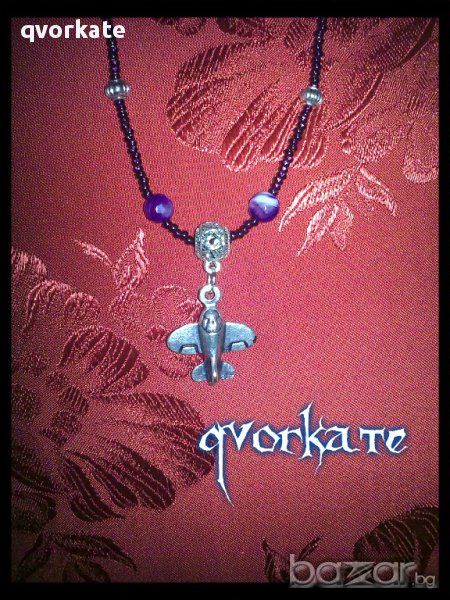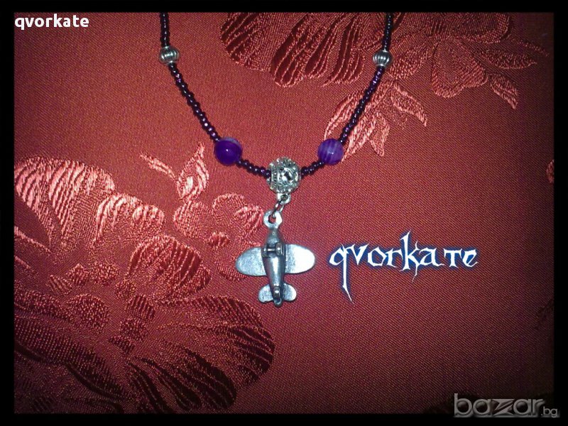 Колие със самолетче-от жадеит,ахат,керамични и метални елементи,чешки мъниста-26см.