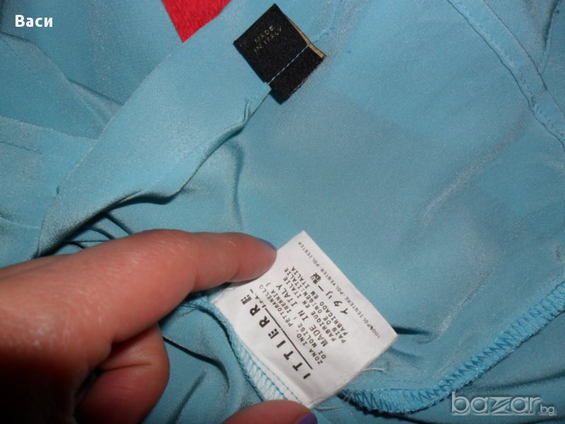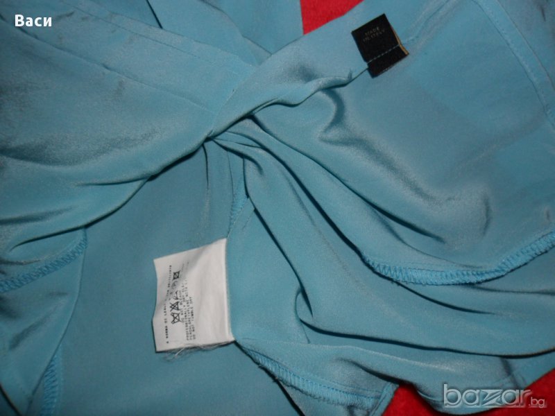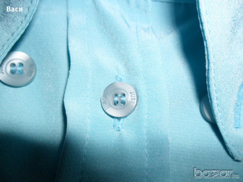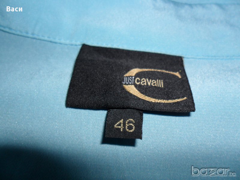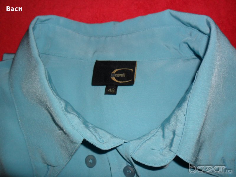 100 % оригинална елегантна дамска риза на Кавали, размер 46. В отлично състояние 100 % полиестер, с лого на марката по всички копчета. Ширина бюст 53 см., дължина 61 см., ръкав 64 см. Цвят небесно син.