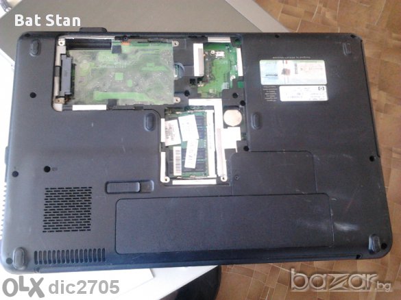Компак пресарио compaq presario Cq61 240d . Работещ* лаптоп . Проблем с подсветката - екрана е тъмен( LED подсветка).Вижда се картина много бледо. Няма твърд диск, захранване,памет и един капак(вижда се на снимките).Дъното , клавиатурата , кабела на дисплея, охладителя с вентилатора, пластмаса с бутон за включване и батерията продадени , http://www.cnet.com/products/compaq-presario-cq61-240ed-15-6-pentium-t4300-vista-home-premium-4-gb-ram-500-gb-hdd/specs/