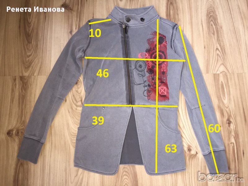 Дамско сако от трико Ripcurl, оригинално, размер S slim fit. Сакото много интересен модел с асиметричен цип, с щампа, долната част седи отворена по средата, на двете страни. Носено е много малко(два-три пъти), много запазено. Размерите са на последната снимка.