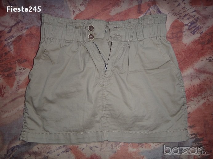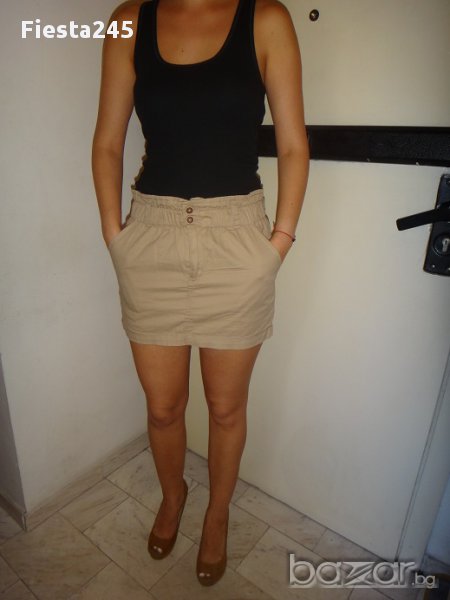 Бежова/светло кафява пола Теранова с джобове отпред, може да се носи и с висока "paper bag'' и с ниска талия. Обувките ги има в друга обява - 39лв (37 номер).