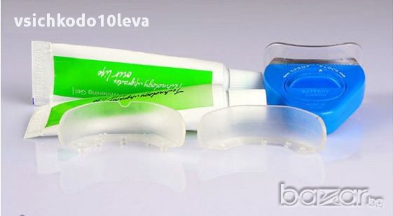 Силиконовата „захапка” може да се разделя на горна и долна част, при желание за избелване само на горните или на долните зъби.