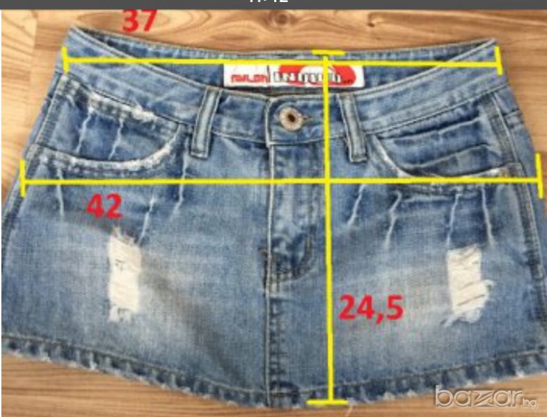 Дамска дънкова къса пола NYLON, размер М, но е умалена, отговаря на XS, изтъркана, прокъсана, обличана един път, като нова, отлично състояние, без забележки. Също с клин или чорапогащник стои много сладко. Размерите са на снимка.