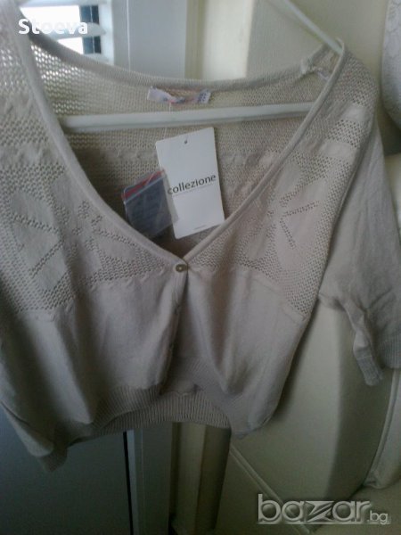 бежова ажурена блуза /бюстие / с 3/4 ръкав - с етикет . Състав : 50/50% памук и
