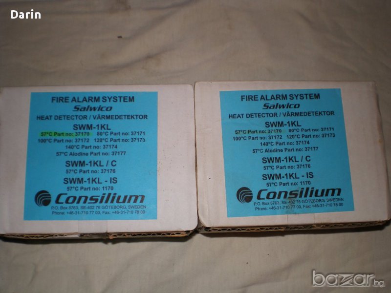 Продавам противопожарни датчици: Температурен датчик Salwico SWM-1KL57 -10лв/бр. (2броя) Ръчен известител - 6 лв/бр (4 броя) Оптичен датчик Salwico DOS3 - 20лв/бр (3броя) Възможно е договаряне за няколко датчика или всички заедно.