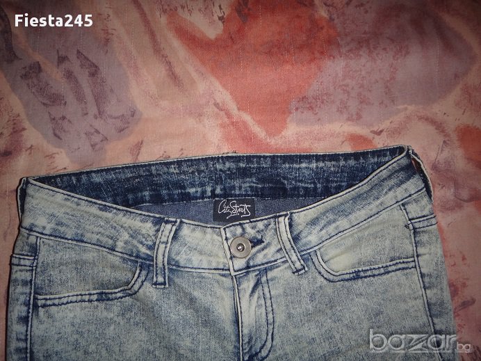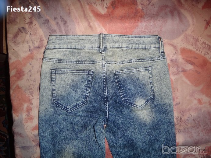Дънки с изтъркан / захабен ефект, 1 или 2 пъти са носени, в отлично състояние. Закупени от Америка. Еластични. Размер S.