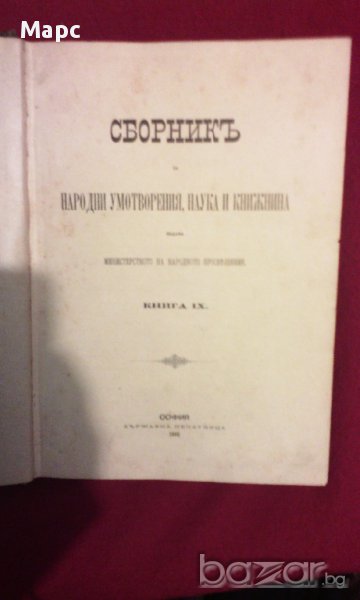 Продавам " Сборникъ за народни умотворения, наука и книжнина , книга ІХ "