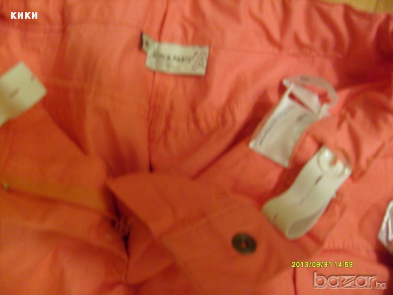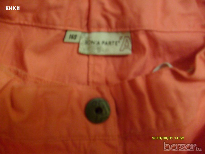 Марка Бонапард. 100 % памук. Дължина- 60 см /43 см Талия- 34 см с ластик за коригиране. Дълбочина -9 см Ханш- 38-40 см Широчина крачол 19- 23 см Убито розово Много приятен цвят.