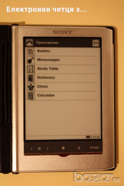 Най-новият 5-инчов електронен четец на компанията Sony е оборудван с E Ink® екран - Pearl. Устройството предлага IR тъчскрийн, а батерията издържа до цели 2 седмици четене с еднократно зареждане. Цветовете на корпуса варират между сребристо и розово.
