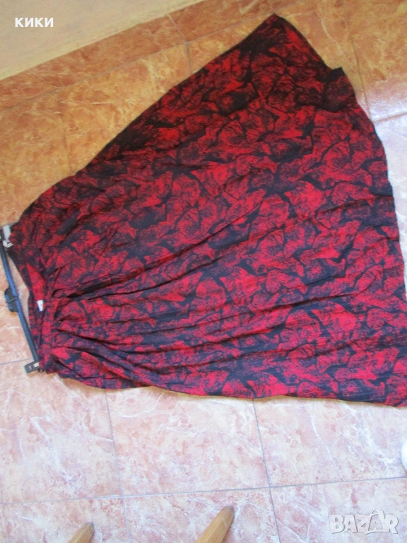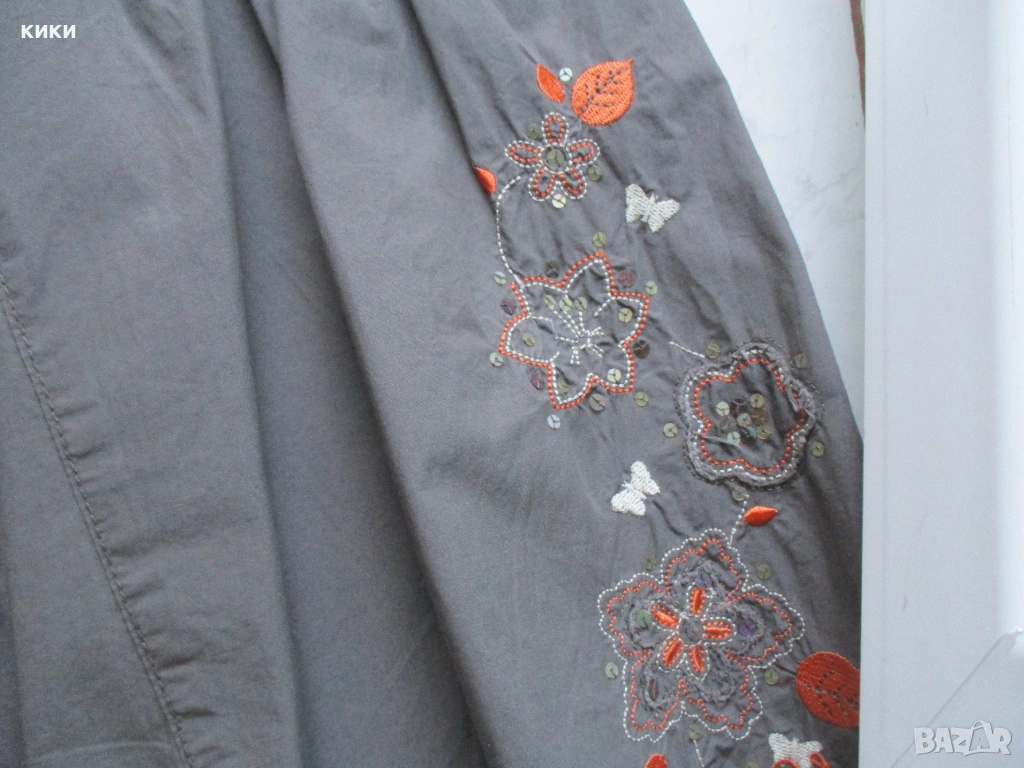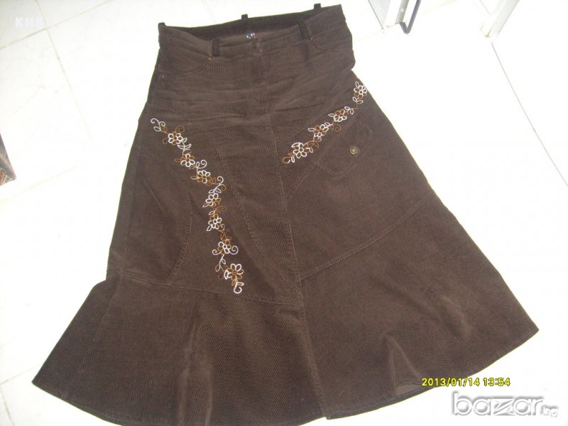 Тъмно наситено кафява пола . Без забележки Подарък колан -нов Талия- 35- 38 см Ханш 46 -47 см дължина 73 см Бродерия цветя. Има лека еластичност. Пада страхотно. -3 EUR