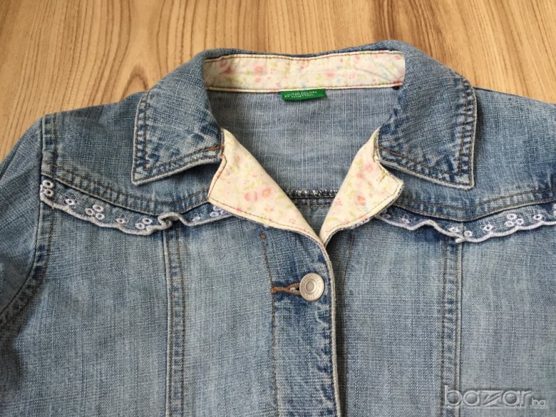 Детско дънково яке Benetton, размер XL/12г., с дантелки. Много малко малко носено, много запазено.