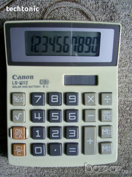 Калкулатор Канон LS101Z. Малко употребяван, почти нов. Двойно захранване - слънчев панел и батерия. Моля да не правите сравнения със съвременните боклуци, продавани под тази марка в България! Не ги купувайте в никакъв случай - обикновено не стават за нищо!