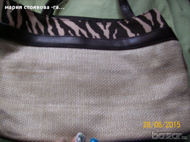 Чисто нови чантичка и несесер на Есте Лаудер.Подходящи за козметика. Прекрасно съчетание на плат с животински принт кафяво и бежаво и сламена плетка за чантата . Несесерчето е изцяло от плат с логото на марката на държача на ципчето. Чантата е без цип .