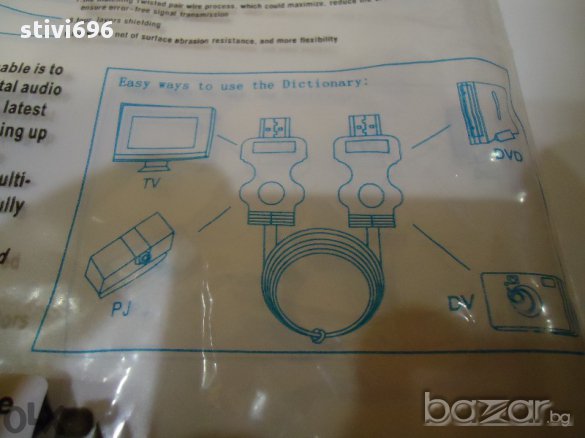 Висококачествен кабел HDMI - HDMI за връзка с компютър монитор или телевизор с компютър или лаптоп NOTEBOOK с изключително здрава външна оплетка и 2 бр.феритни филтъра. HDMI (HIGH-DEFINITION MULTIMEDIA INTERFACE) е първият и единствен в индустрията поддържа, некомпресиран, изцяло цифров аудио / видео интерфейс. Чрез предоставяне на кристално чист, изцяло цифров аудио и видео през един единствен кабел, HDMI драстично опростява окабеляване и помага да предостави на потребителите на най-високо качество за домашно кино преживяване. HDMI осигурява интерфейс между всички аудио / видео източник, като например декодер, DVD плейър или A / V приемник и аудио и / или видео монитор, като например цифрова телевизия (DTV), по един HDMI кабел , HDMI1.4 кабелни нови функции: HDMI ETHERNET канал Обратен звуков канал 3D подкрепя и До 4K поддръжка CONTENT TYPE Допълнителни цветови пространства HDMI MICRO CONNECTOR AUTOMOTIVE SYSTEM CONNECTION 24 К ПОЗЛАТЕНИ ПИНОВЕ.