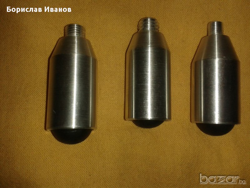 0.33 цента.за 1 брой. За пакет от 50 бр. цена 14 евро. Демек 3 лв. отстъпка за пакет.Има и 15 ММ.топчета.. Три вида резби, за всички модели турски пистолети. Също така 15мм. топчета на цена 0.55лв. за брой и на пакет от 50 бр. отстъпка от 2.50 лв. Има и 50 ти калибър на цена 0.35 ст.за брой. За 100бр. цената е 32лв. 9мм. Хаустни ,немска гилза, месингови на промоционална цена 12 евро.на кутия. Ще ползвате 10% отстъпка при доставката с Еконт...За цени на едро ще се договорим...