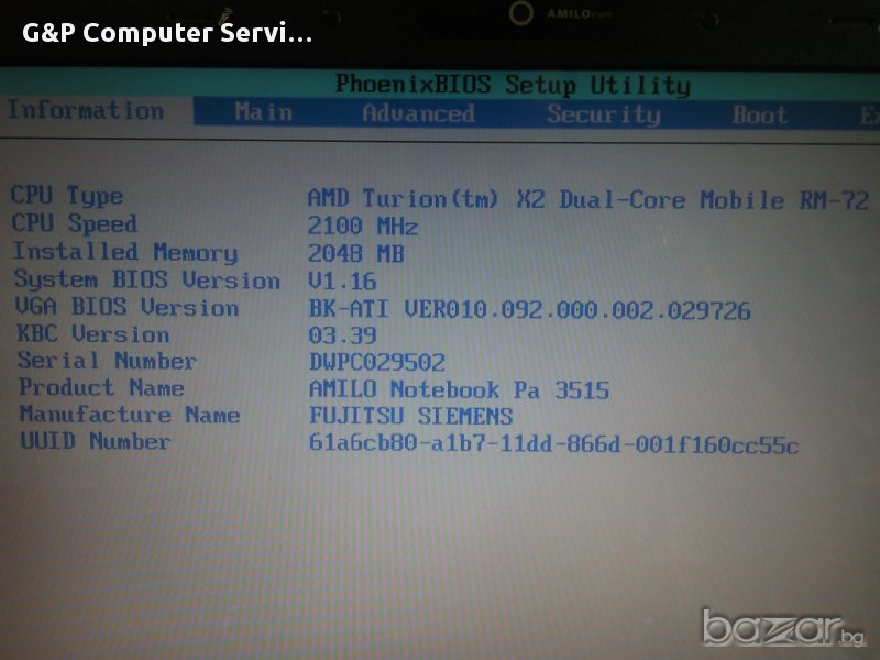 Лаптоп Fujitsu Siemens Amilo Pa3515 - На Части ...