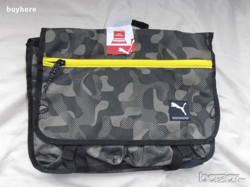 100% оригинална, чисто нова чанта за лаптоп Пума. Произведена от изкуствени материи в тъмно зелен цвят с маскировъчни мотиви.