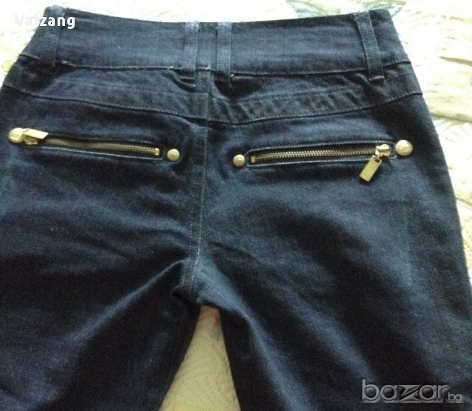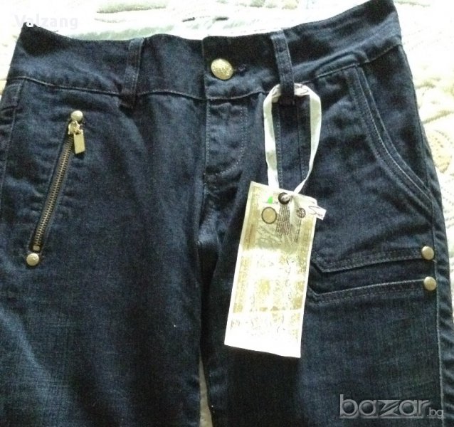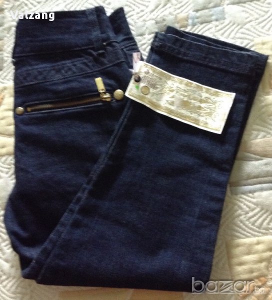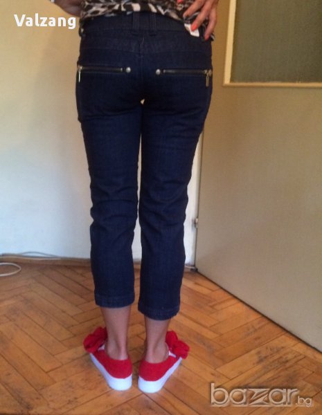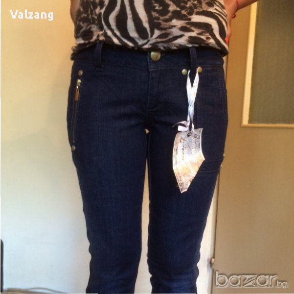Тъмносини нови дамски дънки7/8 99% памук,1% спандекс,ципове и капси с логото на марката-златисти оригинални,с етикет