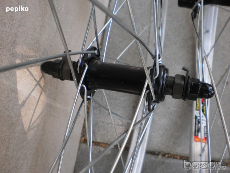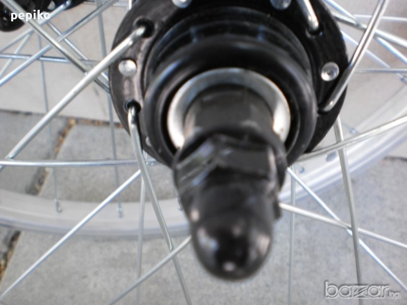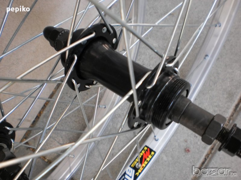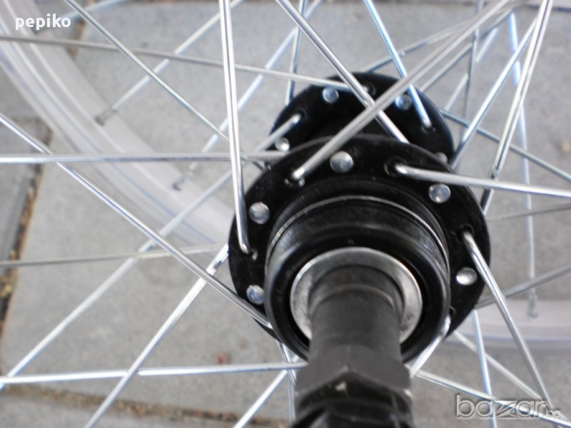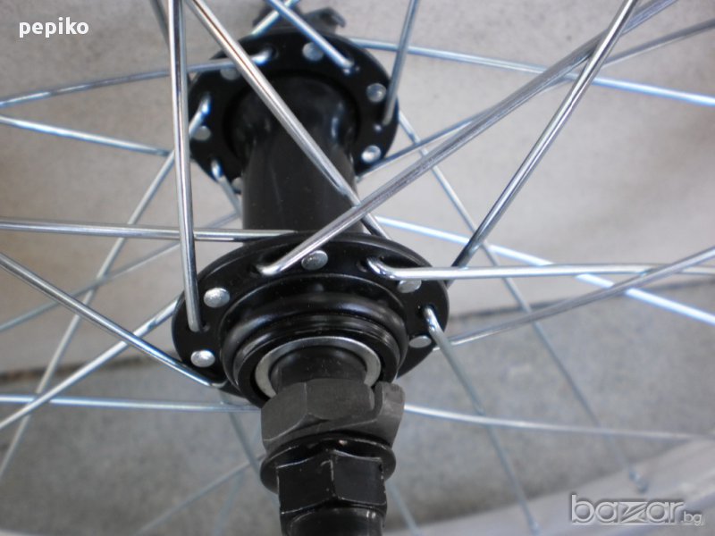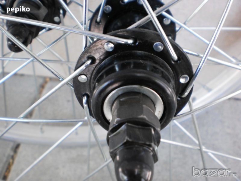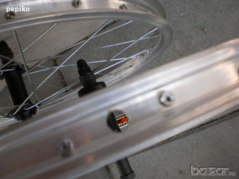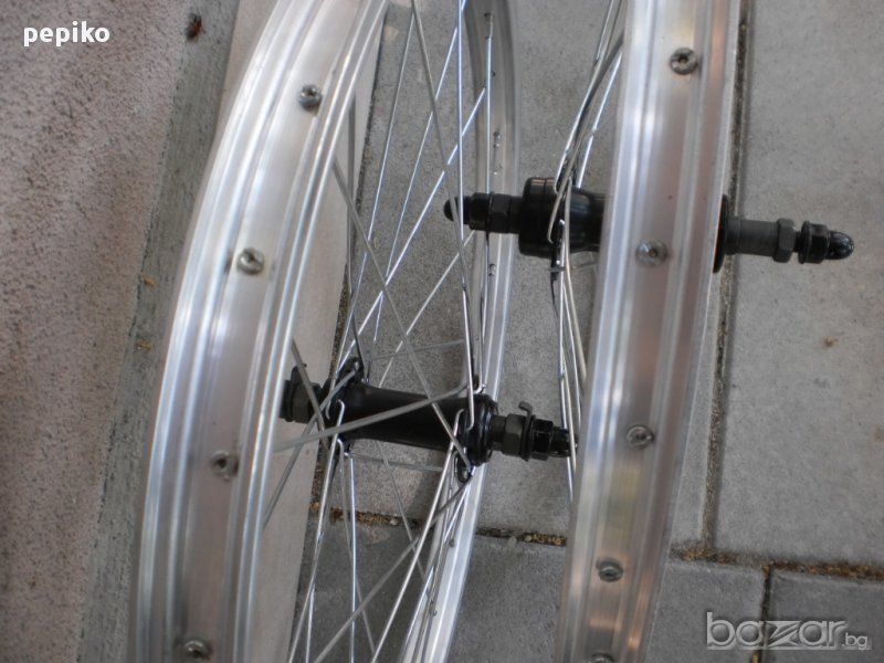 Комплект НОВИ алуминиеви капли за велосипед 20 цола,алуминиеви стандартни капли за вибрейк спирачки, алуминий 6063 проба, със 36 отвора, с никелирани неръждаеми спици,с метални главини,задна главина на резба за 6-7-8 венеца,по желание могат да бъдат оборудвани с нови гуми