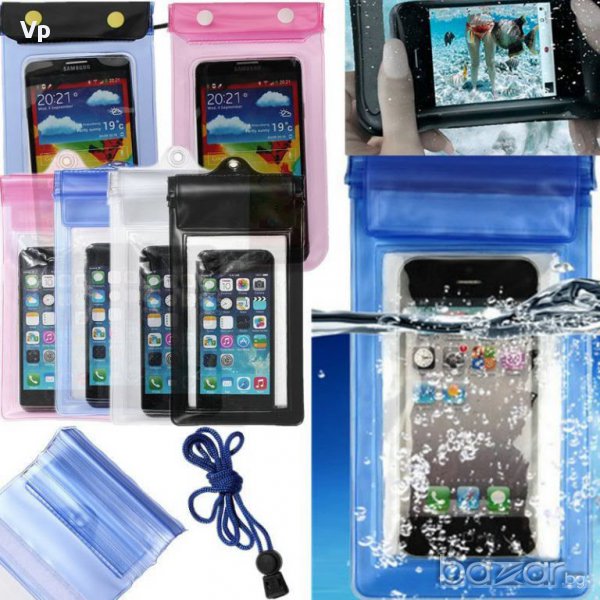 Край на притесненията, че ще си намокрите телефона или фотоапарата, с този водоустойчив калъф те винаги ще останат сухи и защитени! Изработен от PVC защитно фолио с удобна каишка за врата, чрез която сте със "свободни ръце" и може да плувате свободно.. Край и на притесненията, че някой ще ви открадне телефона докато вие сте в морето.