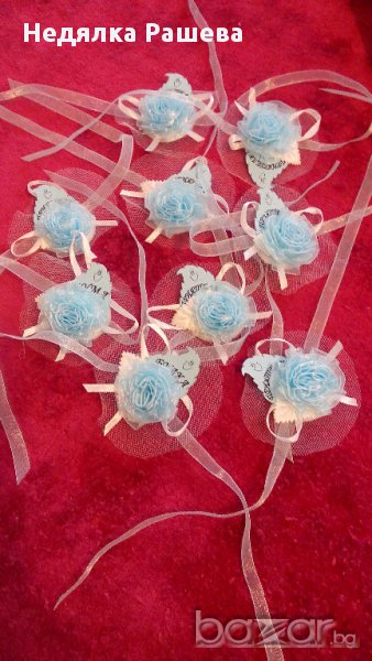 Гривни от нежна органза с надписи булка,кума,шаферка и приятелка,подходящи за моминско парти.Могат да се изработят и без надписи,за сватба.Цвят по избор.Цена -1.30 лв. за брой.