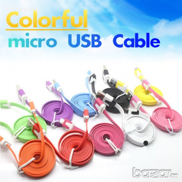 Цветен плосък Micro USB – USB кабел.