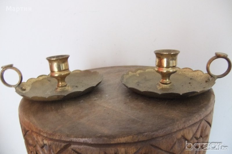 Стари масивни бронзови - Свещници - 8см./ 2бр.! (00224)