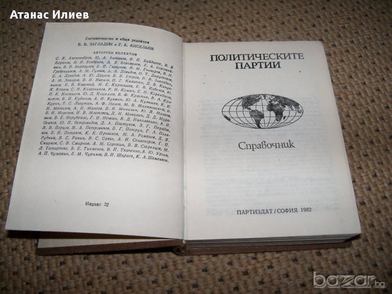 В справочника “Политическите партии” ще намерите най-необходимите сведения за политическите партии в света, за историята на тяхното създаване, за политическите им платформи и ролята, която те играят в обществения живот на съответните страни, както и за организационната им структура, ръководни дейци и печатни органи. Справочника е издаден през 1982 година, а информацията отговаря на състоянието през 1981г. Справочника е интересен тъй-като дава изключително точна и подробна снимка на политическият живот дори и за малко познати държави. Твърди корици, 576 стр. в идеално състояние. Формат 70/100/32 , Партиздат.