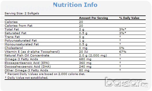Продуктът съдържа натурален концентрат от рибено масло. Всяка доза от две дражета съдържа 2 грама рибено масло, което от своя страна ни доставя 680 мг омега 3 мастни киселини.