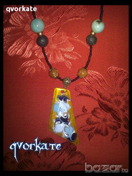 Колие с плочка-от лава,авантюрин,медни елементи,чешки мъниста-30см.