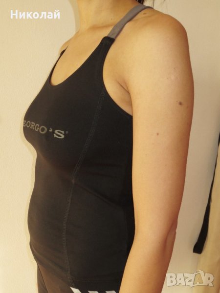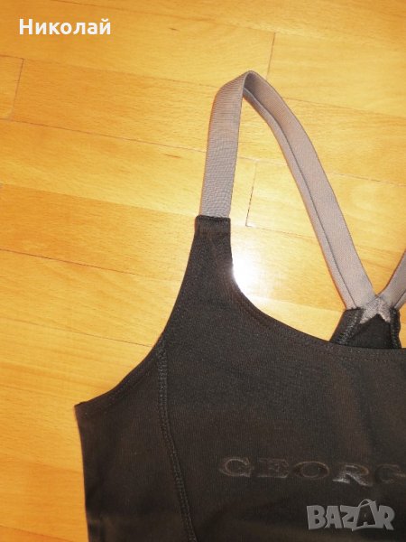 Черен е на цвят размерите му са подмишници 33см, гърди 31, кръста 34.от подмишницата до основата е 27, от деколтето до основата 32 и от края на презрамката до основата 47