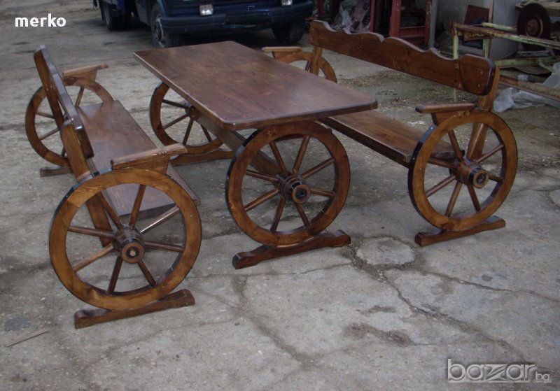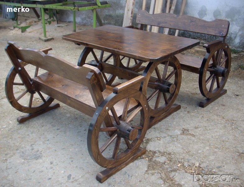 включва маса - 1бр, пейки - 2бр.Изработва се от иглолистна