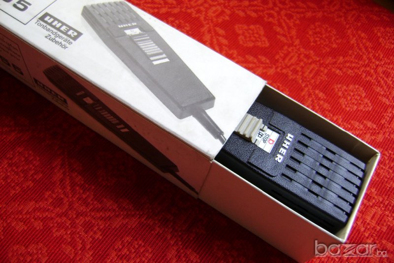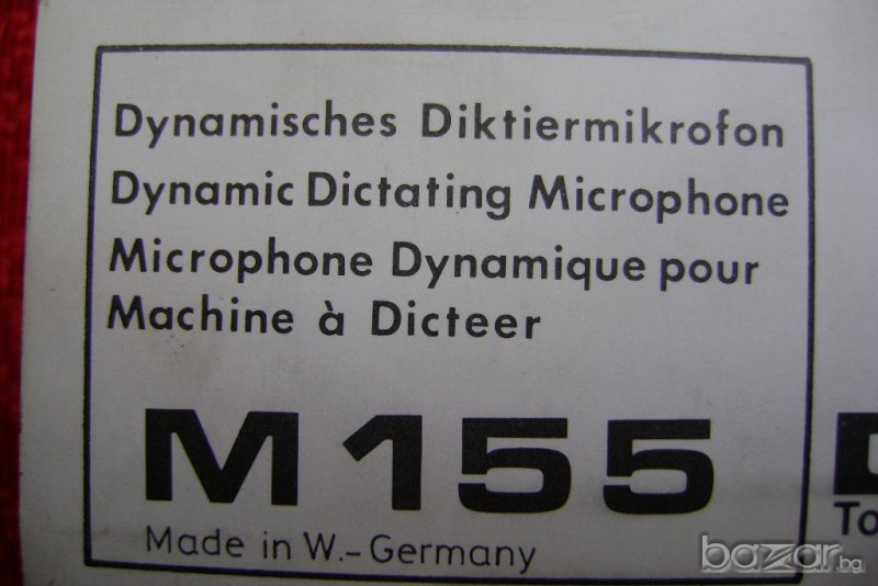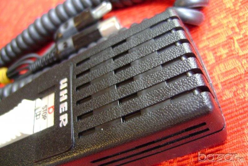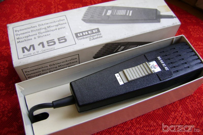 Микрофонът е оригинален „UHER”, произвеждан от 1970 за запис и управление на магнетофон. Има голям диаметър на шпулата, което го прави чувствителен динамичен микрофон с универсално приложение. В корпуса му е интегрирано и дистанционно управление. Подходящ за работа с всички видове записващи устройства, радиостанции и командни конзоли. Микрофонът е нов и е в оригиналната си опаковка.