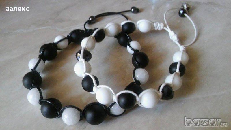 Гривни от ; Оникс , Жадеит , Кварц, Хематит , многостенни мъниста и Тибетска плетка за късмет.