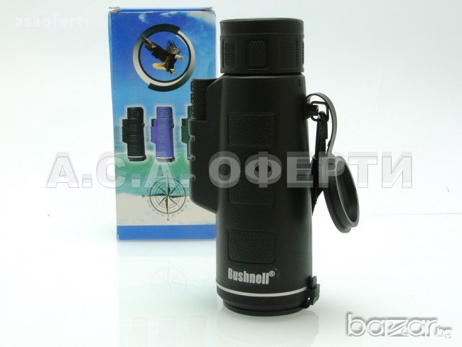 Монокъл BUSHNELL 16X52 66M/8000M Day Night, който фокусира обекти на разстояние над 8000 метра. Водоустойчив и има защита от замъгляване на лещите. Имавъзможност за фокусиране. В комплекта има калъф и парцалче за почистване.