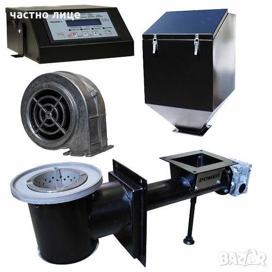 Продавам уникална горелка за пелети,въглища и въглищен прах,дървесен чипс,талаш,лиглитни и кафяви въглища,костилки,орехови черупки, сламени и слънчогледови пелети съсдаващи проблеми при обикновенните пелетни горелки.селскостопанска продукция и други материали до 35мм.Комплекта включва-корелка,контролер,вентилатор,бункер,датчици,мотор с редуктор.Възможен оглед на монтирана такава.Разполагаме с котли 30,40,60,100,150 кВт.Монтажа е универсален,става за всички котли.Предлагаме и комплект с наш котел с 5 прага93%КПД гарантирано!Цени на едро за търговци!
