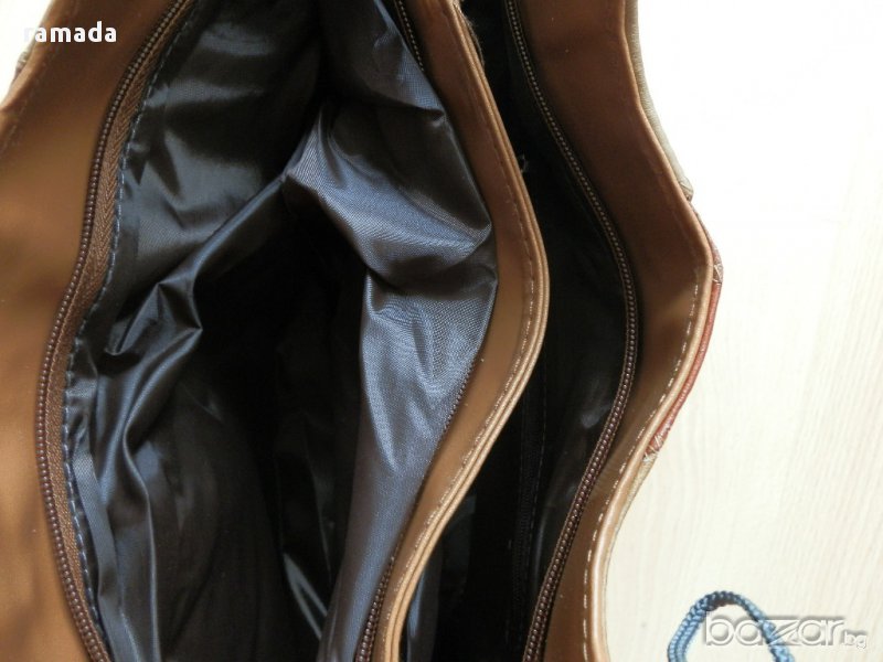 Чанта в кафявата гама,размери 36х27х13 см ,дръжки 55 см