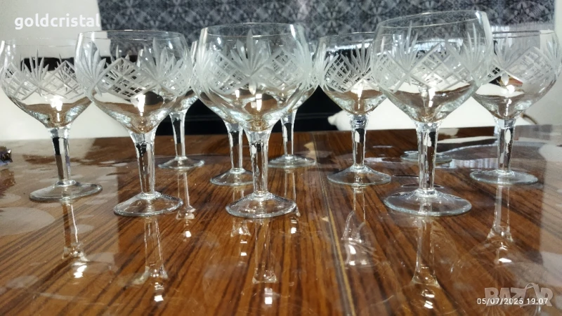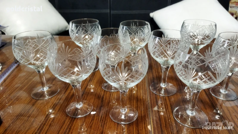 ретро стъклени кристални чаши ръчно гравирани 10 бр една с малка забележка на столчето сервиз комплект сет лот ретро арт декор винтидж колекция стари старинни антикварни предмети обзавеждане за д наома и семейството подходящи за подарък за ценители и колекционери